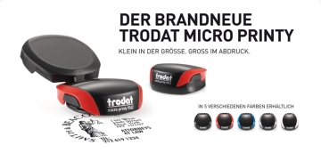 Il Printy 4.0 di Trodat rappresenta tutte le I produttori di timbri fuorigioco. E' quasi il 30% più leggero e più piccolo del suo modello precedente, con conseguente riduzione del consumo di CO² di quasi il 50% in meno. Inoltre, questo modello impressiona: